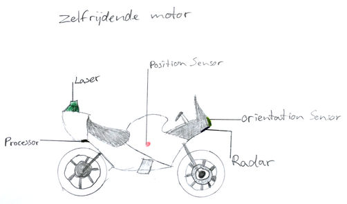 1. Een motor waarbij op de motor verschillende aanpassingen zijn geïntegreerd. De zitting kan draaien zodat de bestuurder beter achterom kan kijken. Achterop de motor zit een camera die de beelden achter de motor live filmt en het beeld uitzendt op een scherm voor op de motor bij het stuur. Dit scherm is waterproof en kan de beelden tonen in een nachtstand. Ook zit er een extra spiegel op het stuur, die een breder zicht veld laat zien dan de spiegels die normaal al op de motor zitten. Ook zit er een helm bij die verkeer achter de motor detecteert en weergeeft via geluid.